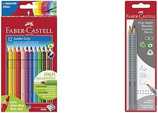 Faber-Castell 110912 - Farbstift Jumbo Grip Kartonetui 12er & 111997-2 Jumbo GRIP Bleistifte, Härtegrad: B, Schaftfarbe: silber