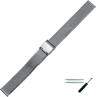 STEGBREITE 14 mm - durch seine Form passt dieses MILANAISE Armband für Uhren aus EDELSTAHL einwandfrei für Uhren mit einer Anstoßbreite von 14mm QUALITÄT - dank unserer langjährigen Erfahrung - SEIT 1945 - steht unser Name MARBURGER für einen der Top-Produzenten von Uhrenarmbändern | viele weitere Uhrbänder aus Leder, Kunststoff & Metall für Armbanduhren jeglicher Marken finden Sie in unserem Shop Marburger Uhrenarmband: Marcoflex Damen-Zugband Silber - 14 mm Flexibles Metall-Uhrband - praktisch und angenehm zu tragen. Eine Schließe ist nicht notwendig, da das Band sich dehnt. Die Bandglieder sind oben matt gebürstet und an den Seiten in einer feinen Linie glanzpoliert. Das verleiht dem Band eine sportliche Optik. Es passt ideal zu Uhren mit mattem und glänzendem Metallgehäuse.