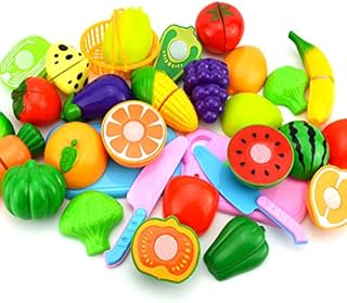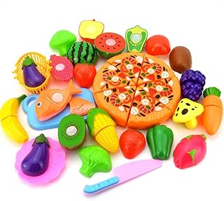 Kitchen Toy Food, 24Pcs Plastic Fruit Vegetable Kitchen Cutting Toy Set Kids Toys