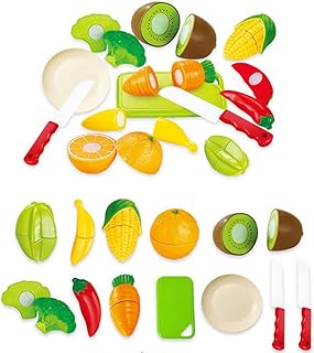 Demarkt Küchenspielzeug Kinder Plastik Obst Gemüse Cutting Toy Pretend Play Rollenspiele Spielzeug (24PCS)
