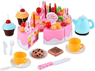 Gearmax® 54pcs Spielzeug Kuchen Schneiden Geschirrset Cutting Toy Pretend Play Kinder-Rollenspiele Küchenspielzeug(Rosa)