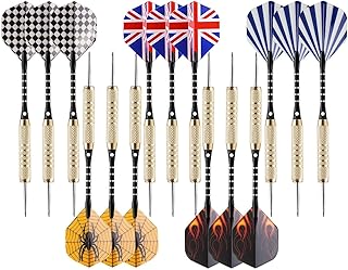 Dartpfeile steel, steel dart pfeile mit metallspitze 18g, dart flights mit brass fass & aluminium schäfte, dartpfeile set perfekt für Profis oder Anfänger [15 Sets]