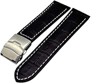 Sulla 24mm Genuine Leder Uhrenarmband mit Edelstahl Faltschließe schwarz weiße Naht Krokoprägung