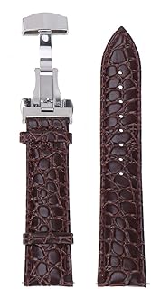 MUEN Echtes Krokodilleder Uhrenarmband mit Faltschließe, 12mm-24mm, Schwarz/Brauner Alligator Ersatz Uhren Zubehör Poliertes Uhrenarmband für Männer/Frauen