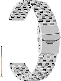 Edelstahl-Uhrenarmband 20mm 22mm 24mm Schraubbefestigung Metallglieder Uhrenarmband Faltschließe Ingenieur-Uhrenarmbänder für Herren und Damen schwarz Silber