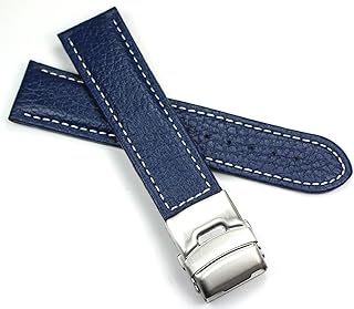 Uhrenarmband Glattleder Faltschließe 24mm blau + weisser Naht 3992