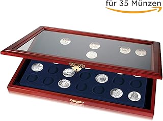 SAFE 5869 Echt Holz Münzkasette für 35 x 2 EURO Euromünzen | ebenso für 10 / 20 Euro ohne Münzkapseln geeignet | Königsblaue Samteinlage | Abmessungen: 375x260x30 mm