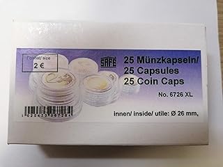 SAFE Caps 26 Nr. 6726XL 50 Münzkapseln Ideal für 2 EURO Münzen oder Münzen bis zu einem Durchmesser von 26 mm Kapseln aus hochwertigem, extrem kratzfesten Plexiglas * Festgreifender und gleichzeitig leicht zu öffnender Verschluß * Geeignet für alle Münzen von mm entsprechend der Kapselgröße * Geeignet für Münzboxen, Etuis, Kassetten, Folder und sonstige Sammelsysteme. * Abgepackt in 25er Packs * 1.Wahl hergestellt in Europa in der EU ! Der niedrigste Preis für 50 SAFE Münzkapseln CAPS 26 - Ideal für 2 EURO Münzen - Coincaps - Münzenkapseln Entdecken Sie Millionen von Rabattprodukten auf Little-Budget.de