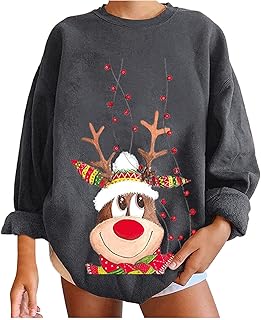 Weihnachtspullover Damen Oversize Sweatshirts Teenager Mädchen Pulli Winter Herbst Rentier Bedruckte Langarm Mode Casual Bluse Herbst und Winter Oberteile Tops