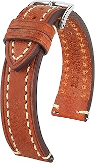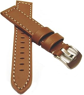 22 mm Uhrenarmband Sattelleder Kalbsleder Cognac braun weißer Naht Uhrenband