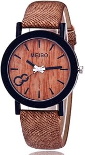 Damen Armbanduhr, Frauen Mode Holzmaserung PU Lederband Analog Quarz Runde Uhren