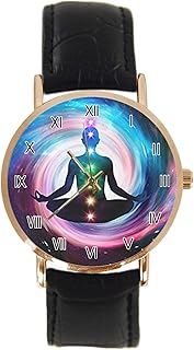 Dunkelblaue Fraktale Chakra Mandala Armbanduhr Mode Klassisch Unisex Analog Quarz Edelstahl Gehäuse Lederband Uhren