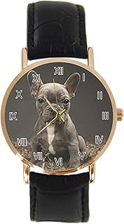 Baby Französische Bulldogge süße Welpe Armbanduhr Mode Klassisch Unisex Analog Quarz Edelstahl Gehäuse Leder Armband Uhren