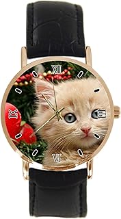 Weihnachten Katze Kätzchen Armbanduhr Mode Klassisch Unisex Analog Quarz Edelstahl Gehäuse Lederband Uhren