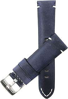 20mm - 24mm, Leder Uhrenarmband für Herren, mit weißer Naht, Vintage-Stil, Schließe Edelstahl, verfügbar in blau, braun, schwarz und hellbraun