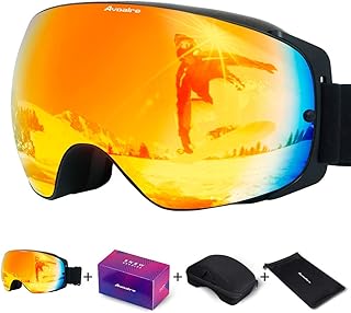 Avoalre Skibrille Snowboardbrille Für Damen und Herren - Rahmenlos Ski Snowboard Brille für Brillenträger Schutzbrillen, 100% OTG Anti-Fog 400 UV-Schutz Schneebrille Verspiegelt Snowboard Ski Goggles