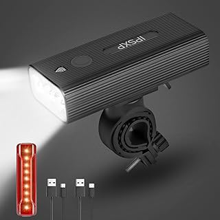 IPSXP Fahrradlicht, USB Wiederaufladbare LED-Fahrrad-Frontscheinwerfer, hohe Helligkeit, 6 Stunden, für Mountainbike, Straße, Sicherheit, Pendler, Taschenlampe mit 3/5 Modi, wasserdicht, IPX5 Fahrradlicht