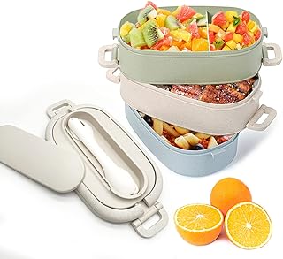 Bento Box-Brotdose Lunchbox mit Dreischichtige Lunch Box,Frühstücksbox,Spülmaschinenfest Mikrowellenfest Kühlschrankfest Mit Löffel und Gabel Set