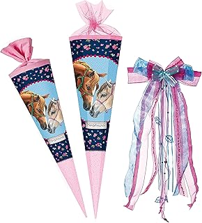 alles-meine.de GmbH Schultüte - Pferdefreunde 2 - Pferde - 85 cm - 6 eckig - Tüllabschluß - Zuckertüte - mit / ohne Kunststoff Spitze - Nestler - Jungen Mädchen - Coppenrath - Ti..