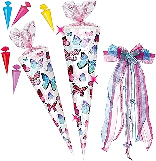 alles-meine.de GmbH 3D Glitzer - Set - Schultüte _ Form & Größenwahl + 5 kleine Zuckertüten - Schmetterlinge & Blumen - rosa - pink - 85 cm - eckig - Tüllabschluß - Zuckertüte -..